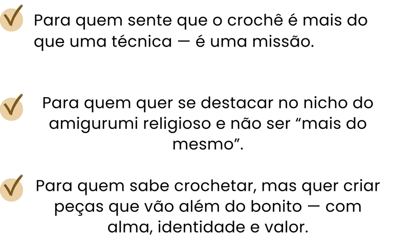 um curso pra transformar seu amigurumi religioso em peças que tocam o coração — e geram renda. ✨