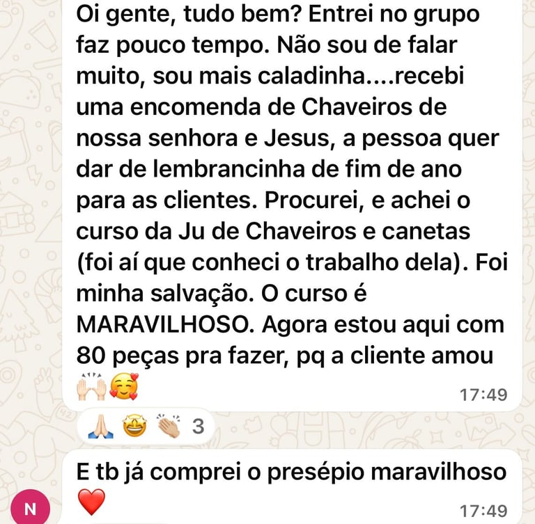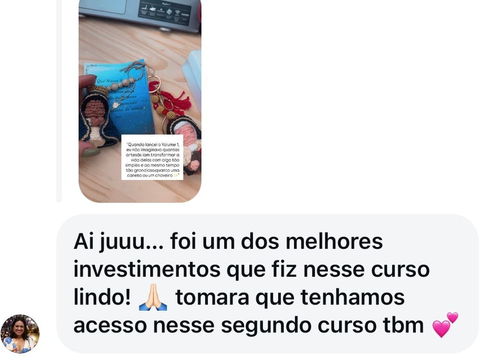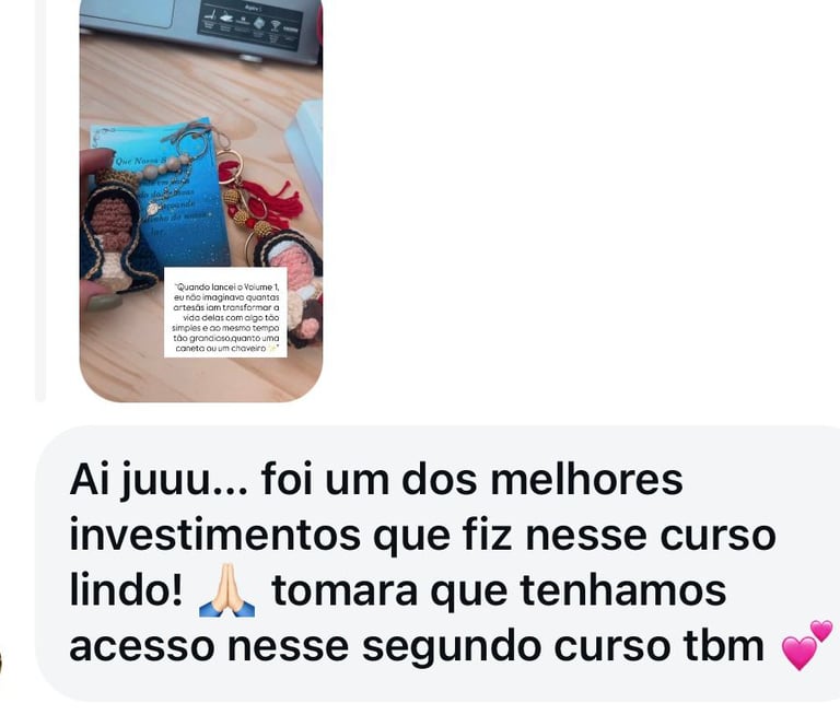 Oie Determinada me chamo Juscelia ribeiro , mas conhecida como Ju (como minhas alunas carinhosamente me chamam )sou Mãe , Avó, empreendedora , Artesã e design de amigurumis , apaixonada especialmente no nicho religioso . Desde pequena, sempre tive uma ligação especial com as artes manuais, e ao longo dos anos, transformei essa paixão em um negócio que me traz imensa alegria e satisfação ,espero que você possa sentir a mesma felicidade que sinto ao criar cada amigurumi.