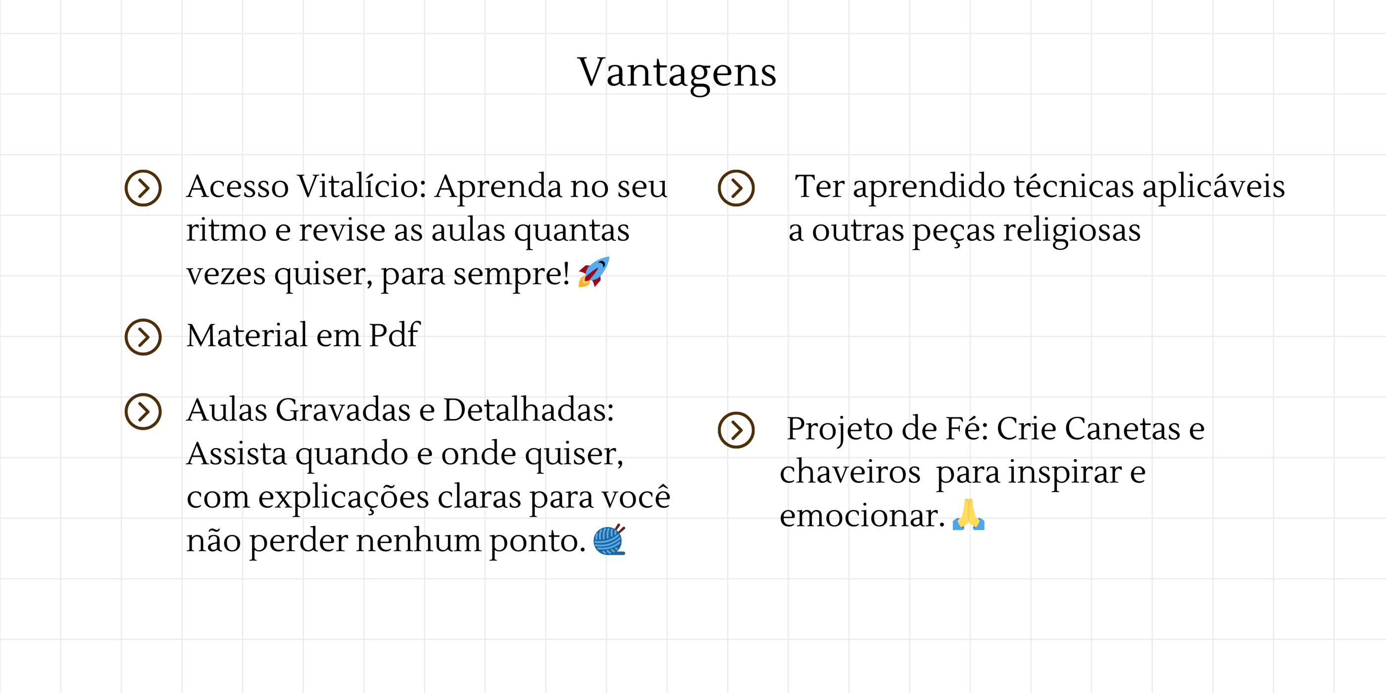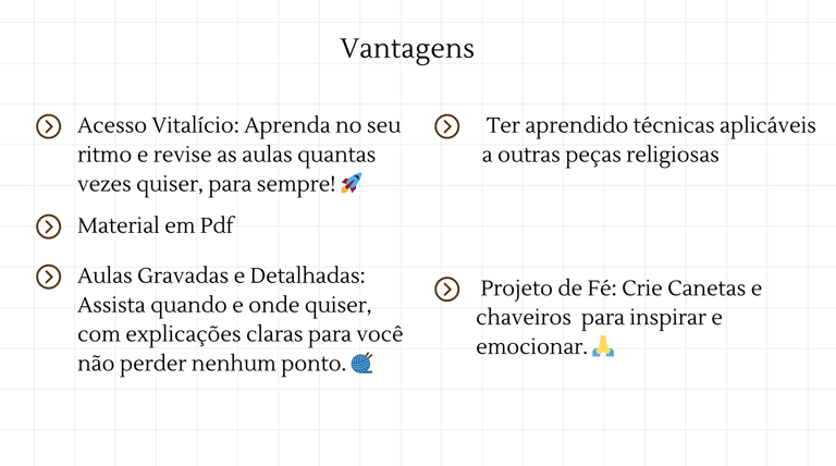 Neste curso especial, você será guiado(a) a criar delicadas miniaturas em amigurumi de figuras religiosas que aquecem o coração!